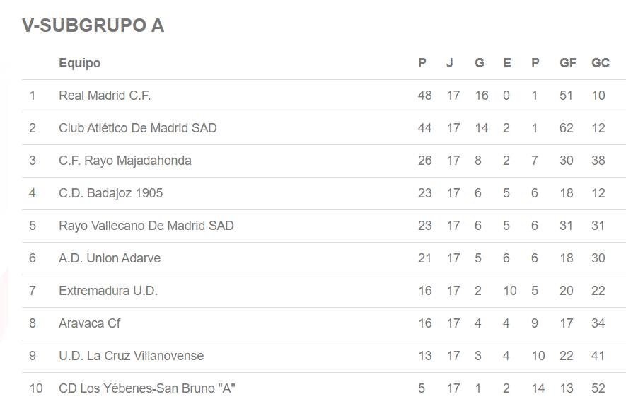 Por el momento, y antes de la última jornada de la primera fase, así esta la clasificación del subgrupo 5A de la Juvenil División de Honor: