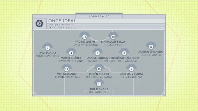 Los jugadores del Rayo Vallecano Yacine Qasmi y Mario Suárez han sido elegidos en el once ideal de la jornada 30 de LaLiga Smartbank.