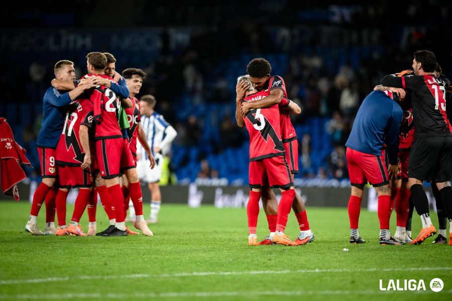 El Rayo Vallecano encontró alivio y respiro en San Sebastián. Los de Íñigo Pérez, que podían haber caído a las posiciones de descenso cuatro temporadas después, salieron de sus apuros y ganaron a la Real Sociedad en Anoeta para tomar dos puntos de margen sobre el Girona, primero en ocupar los puestos rojos de la clasificación.