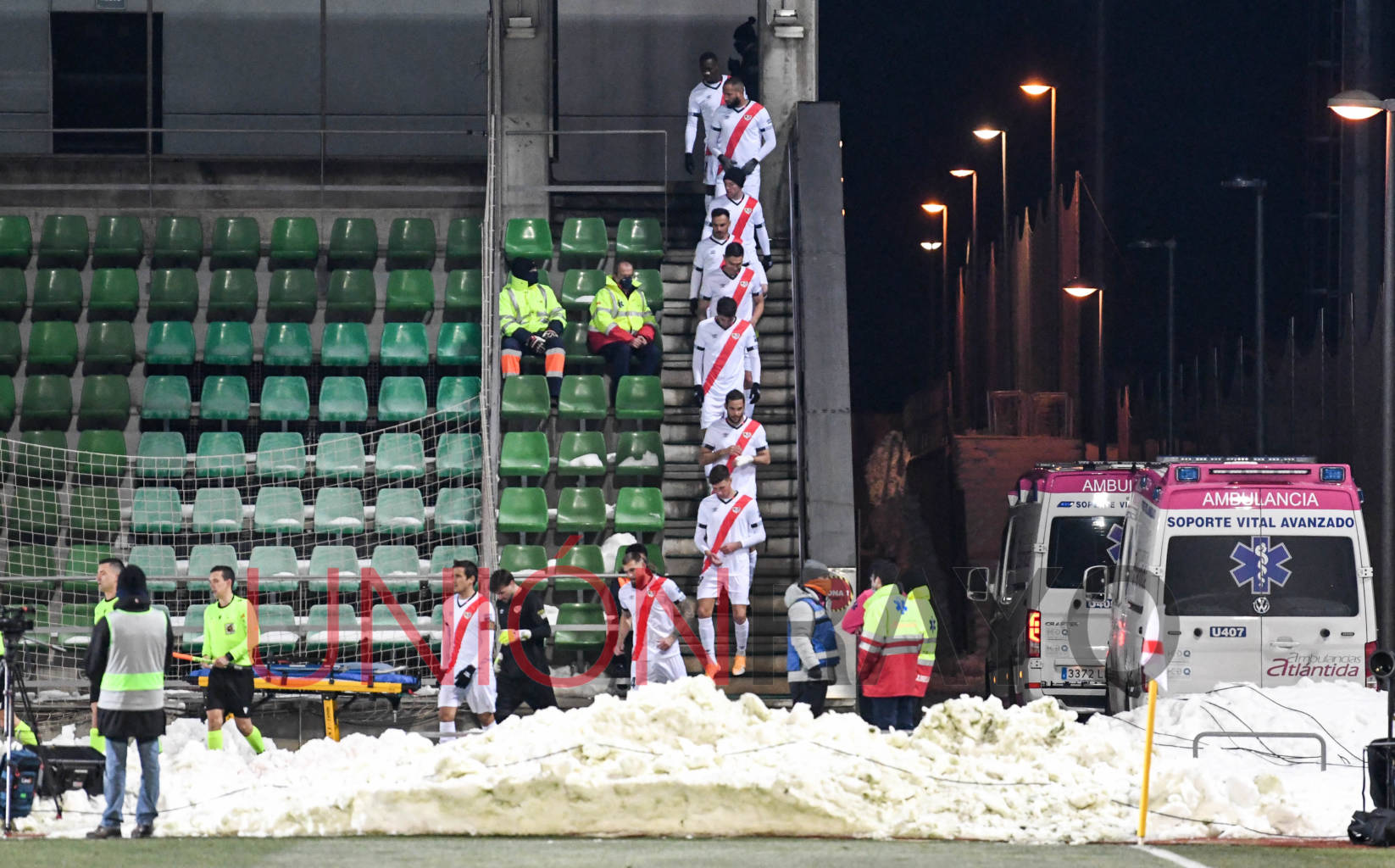 Aquello se debió al temporal Filomena que azotó por aquel entonces a España. Ese encuentro se iba a disputar inicialmente en el Estadio de Vallecas, fue aplazado posteriormente a la Ciudad Deportiva, y tuvo que ser aplazado en una segunda ocasión, disputándose finalmente en la Ciudad del Fútbol de Las Rozas, sede de la Real Federación de Fútbol (RFEF). El causante de aquellos dos desplazamientos fue la nieve y las capas de hielo que cubrían el terreno de juego de ambos recintos.