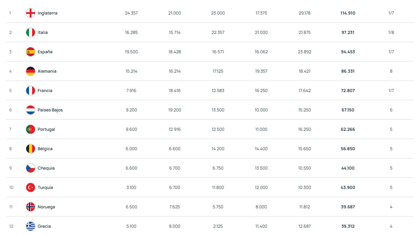 Las doce federaciones actualmente con mejor coeficiente UEFA Fuente: UEFAParticipantes