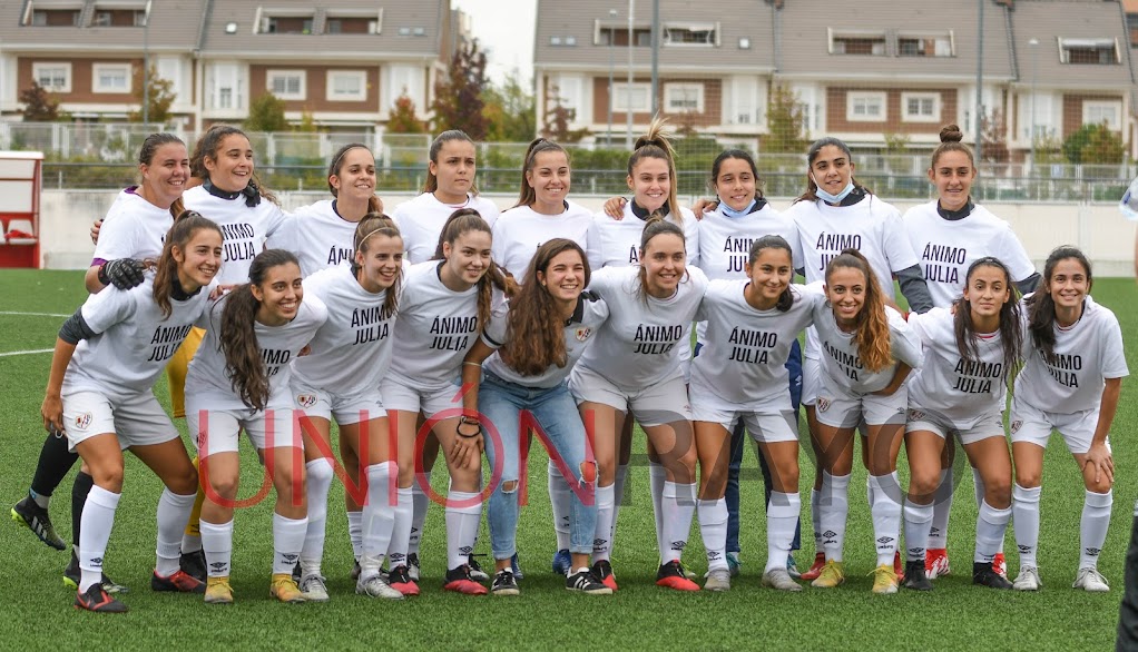 El conjunto de Óscar Lomas firma una lateral tras la grave lesión de Julia Muñoz. La plantilla del Femenino B quiso apoyar a su compañera el último partido ante el Real Madrid B saliendo al campo con unas camisetas con el mensaje: ‘Ánimo Julia’.