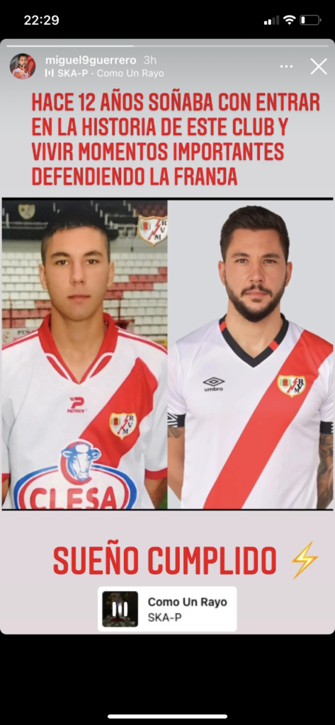 El jugador del Rayo Vallecano Miguel Ángel Guerrero cumplió unos de sus sueños hace apenas unos días tras lograr el ascenso a Primera División con el equipo franjirrojo tras el triunfo ante el Girona (0-2) en Montilivi.