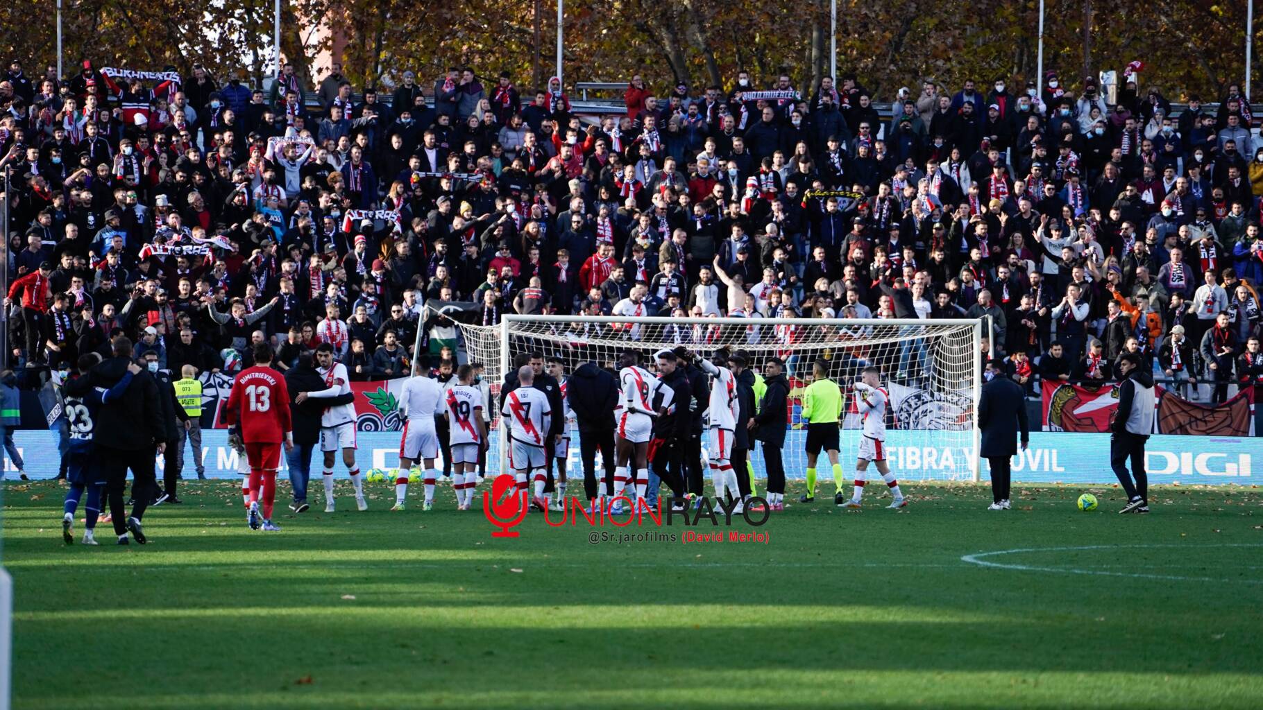 La afición del Rayo celebra el triunfo en casa contra el Alavés
