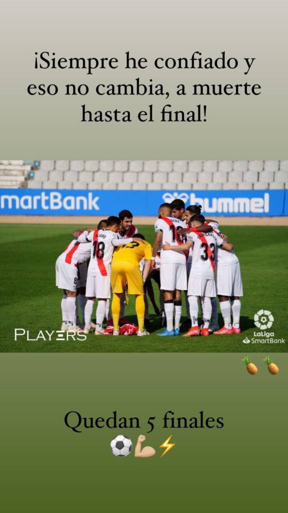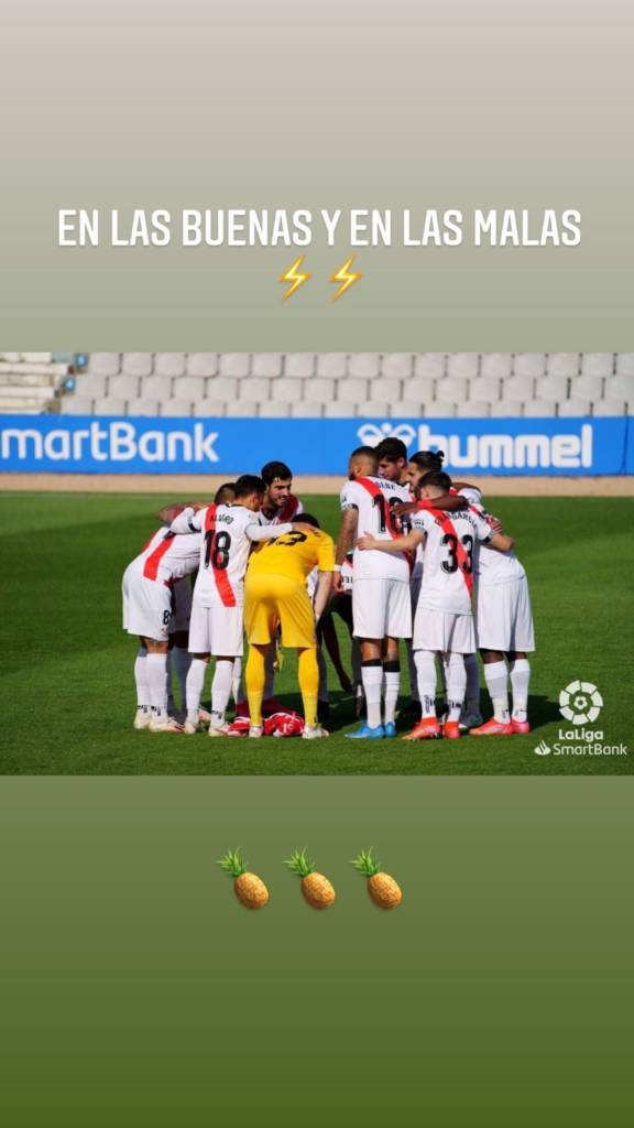 Futbolistas del equipo han subido a redes sociales mensajes de positivismo tras la dura derrota ante el Sabadell. “A muerte con este equipo” (Óscar Valentín), “En las buenas y en las malas” (Comesaña) o “Cinco finales, lo conseguiremos (Mario Hernández) son algunos de los mensajes que reflejaron.