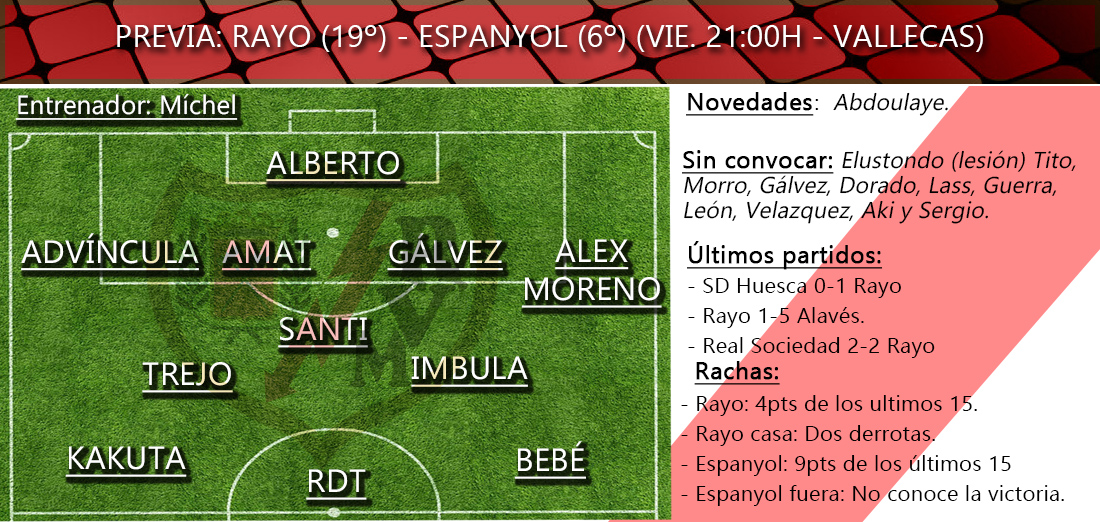 Le está costando al Rayo Vallecano tomar el pulso a la categoría. Tras el empate en Anoeta, los franjirrojos buscan hacer bueno el punto ante la Real Sociedad en el choque contra el Espanyol. Vallecas quiere presenciar la primera victoria de su equipo en casa para ver al equipo salir de los puestos de descenso.