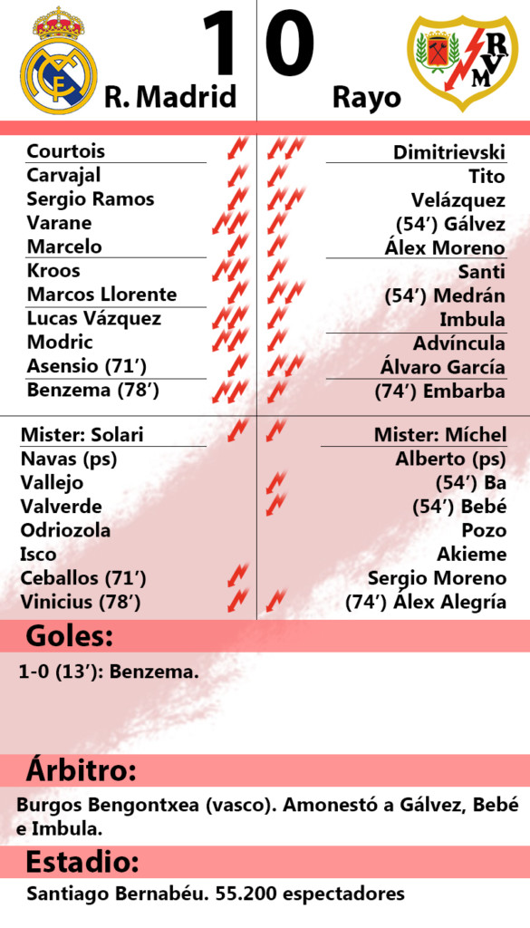 Un tempranero gol de Benzema fue suficiente para tumbar al Rayo Vallecano en su visita al Santiago Bernabéu.