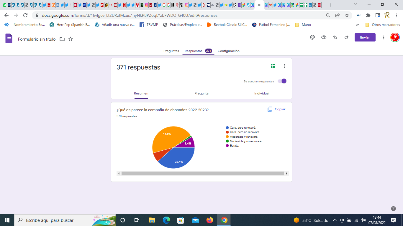 Además, el 38,4% cree que la campaña de abonados es cara, pero terminará renovando igualmente. Por el contrario, un 7,3% de los encuestados, no renovará su abono con la entidad franjirroja y piensa que ha sido cara.