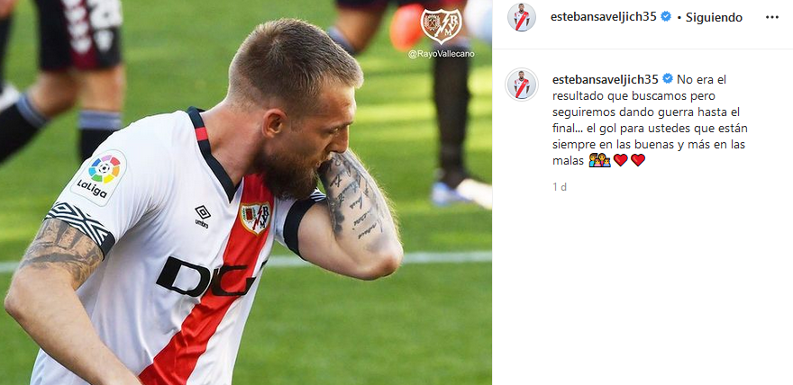 «No era el resultado que buscamos pero seguiremos dando guerra hasta el final… el gol para ustedes que están siempre en las buenas y más en las malas», digirido a su familia.
