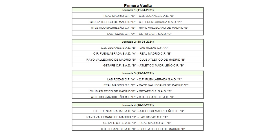 Los equipos jugarán cuatro partidos a una única vuelta y sin enfrentarse los conjuntos que disputaron la Primera Fase en el mismo subgrupo. Es decir el Rayo se enfrentará a Atlético de Madrid B, Real Madrid B, Atlético Madrileño B y Las Rozas.