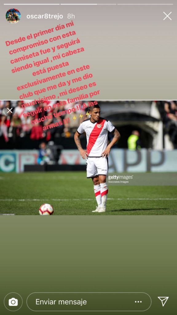 El jugador del Rayo Vallecano Óscar Trejo ha manifestado públicamente su deseo de continuar en el Rayo Vallecano tras sus polémicas declaraciones sobre el interés del Estudiantes de la Plata.