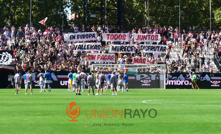 Tras el partido ante el Celta de Vigo, el fondo de Vallecas mostró una pancarta que decía lo siguiente: “En Europa todos juntos. Vallecas merece disfrutar sin pagar más”. Bukaneros reclama que no se tenga que pagar más por ver los partidos de Conference League tal y como se está informando en los últimos días y que probablemente se ponga a la venta la próxima semana.